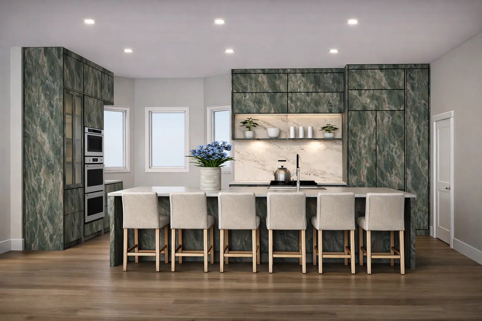 Finish Stratos: Fine linear abstract texture with subtle striations. Modern, minimalist surface that adds movement without heavy grain.
